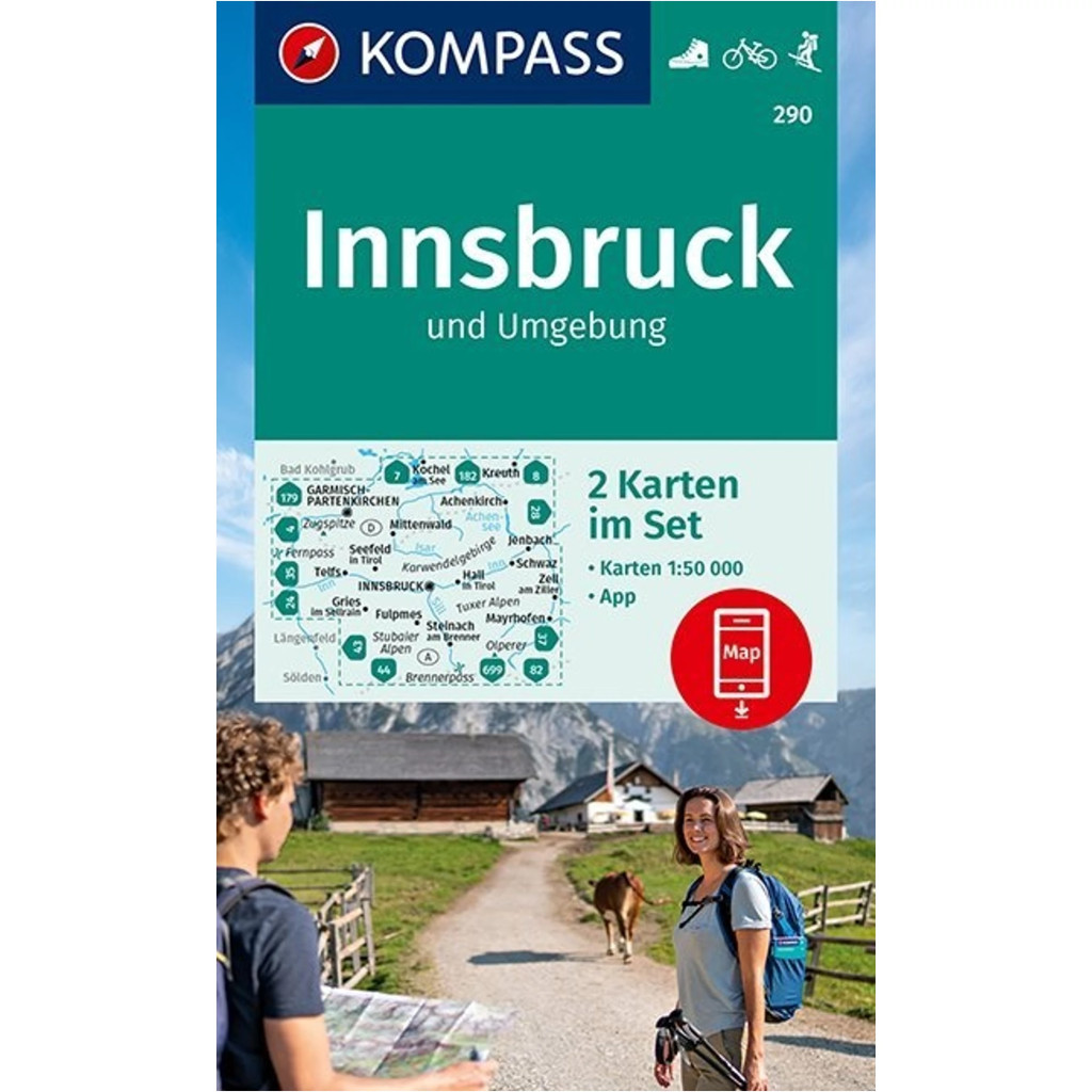 290. Innsbruck és környéke turistatérkép Kompass 1:50e, K 290 Innsbruck turista térkép 2 részes szett