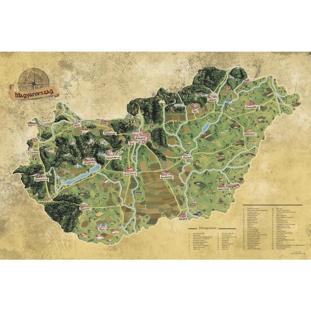 A térkép dekorációs célra készült, nem navigációs eszköz. A keret nem tartozék.