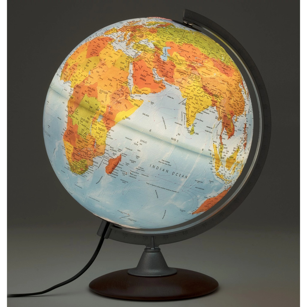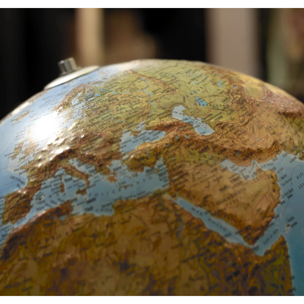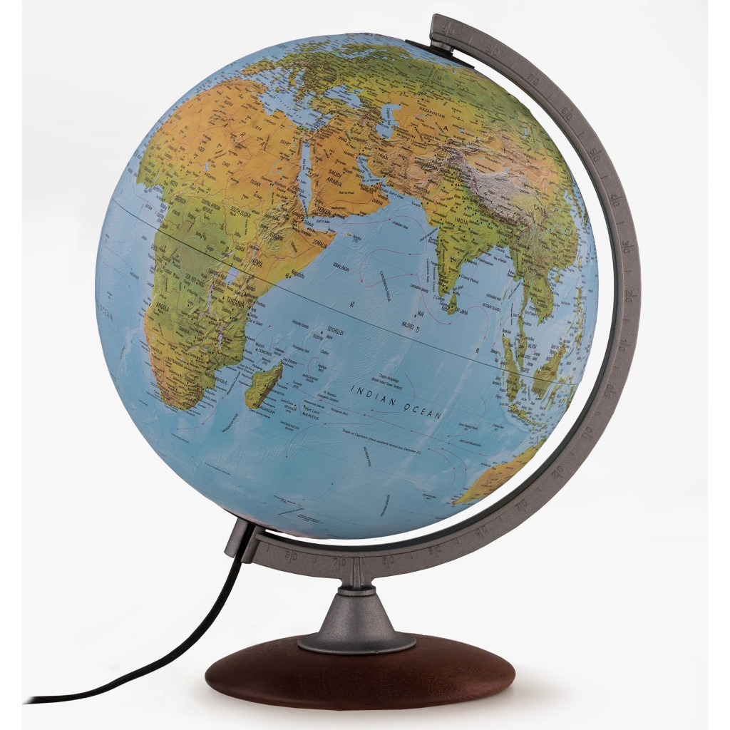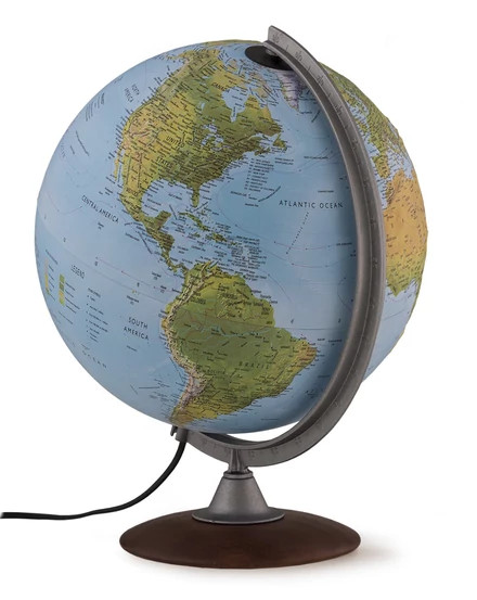 Ennél a magyar nyelvű földgömbnél nemcsak látni, de érezni is lehet a hegyvonulatokat, ahogy kiemelkednek a föld felszínéből. A kivilágított földgömb diszkrét fénye kellemes hangulatot teremt otthonában vagy irodájában.