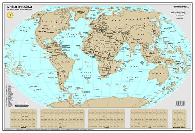 2025-ös kiadás. Kapard le azt a területet egy pénzérmével, ahol jártál már a világban. Különböző színekkel különülnek el a lekapart felületek, így minél többet kaparsz, annál látványosabb. Kifejezetten dekoratív, szép kidolgozású, jól olvasható világtérkép.